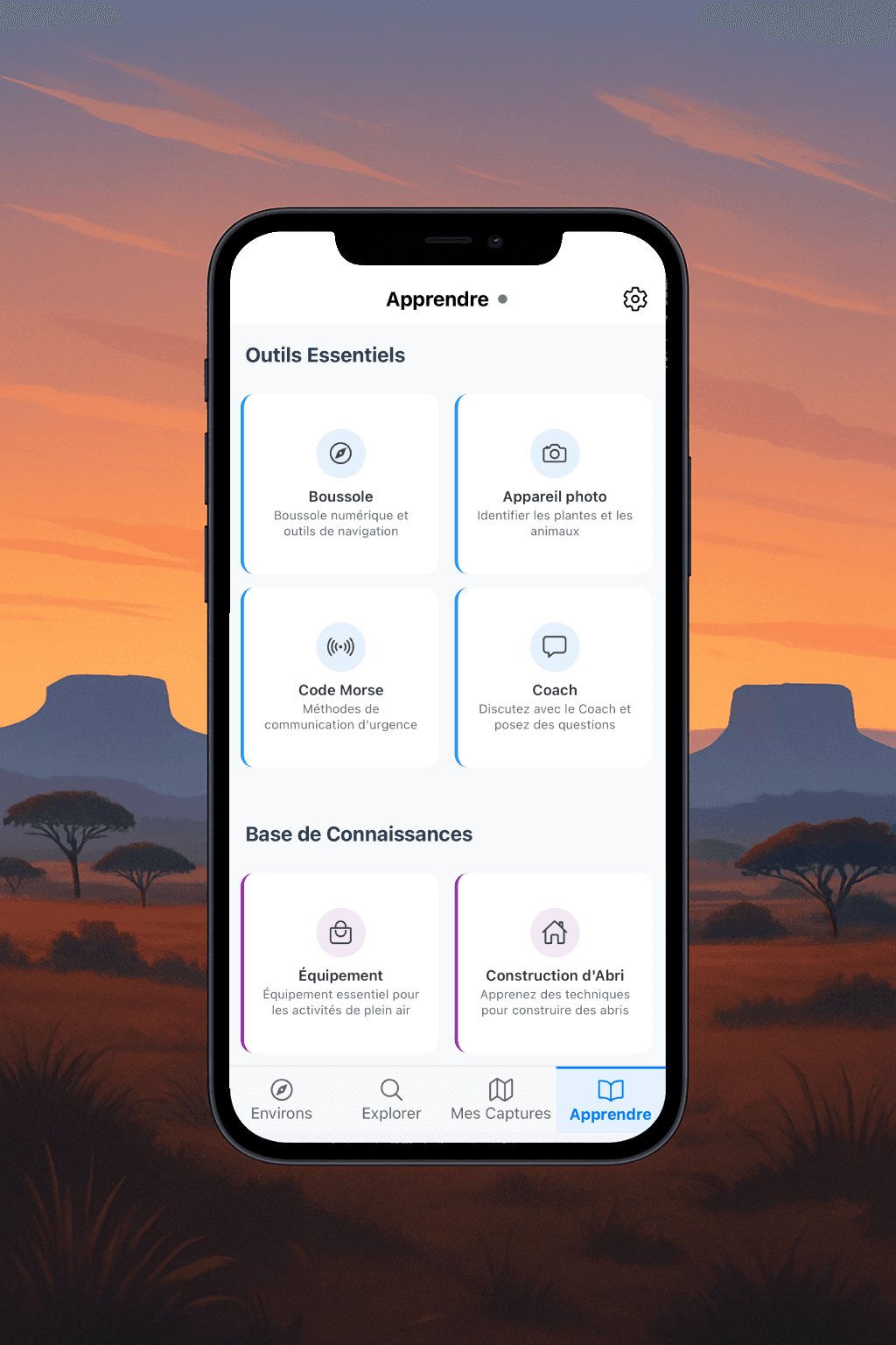 Apprenez et testez vos connaissances à travers des quiz captivants, des aventures guidées et des parcours d'apprentissage personnalisés. Suivez vos progrès et gagnez des récompenses en maîtrisant les compétences outdoor.