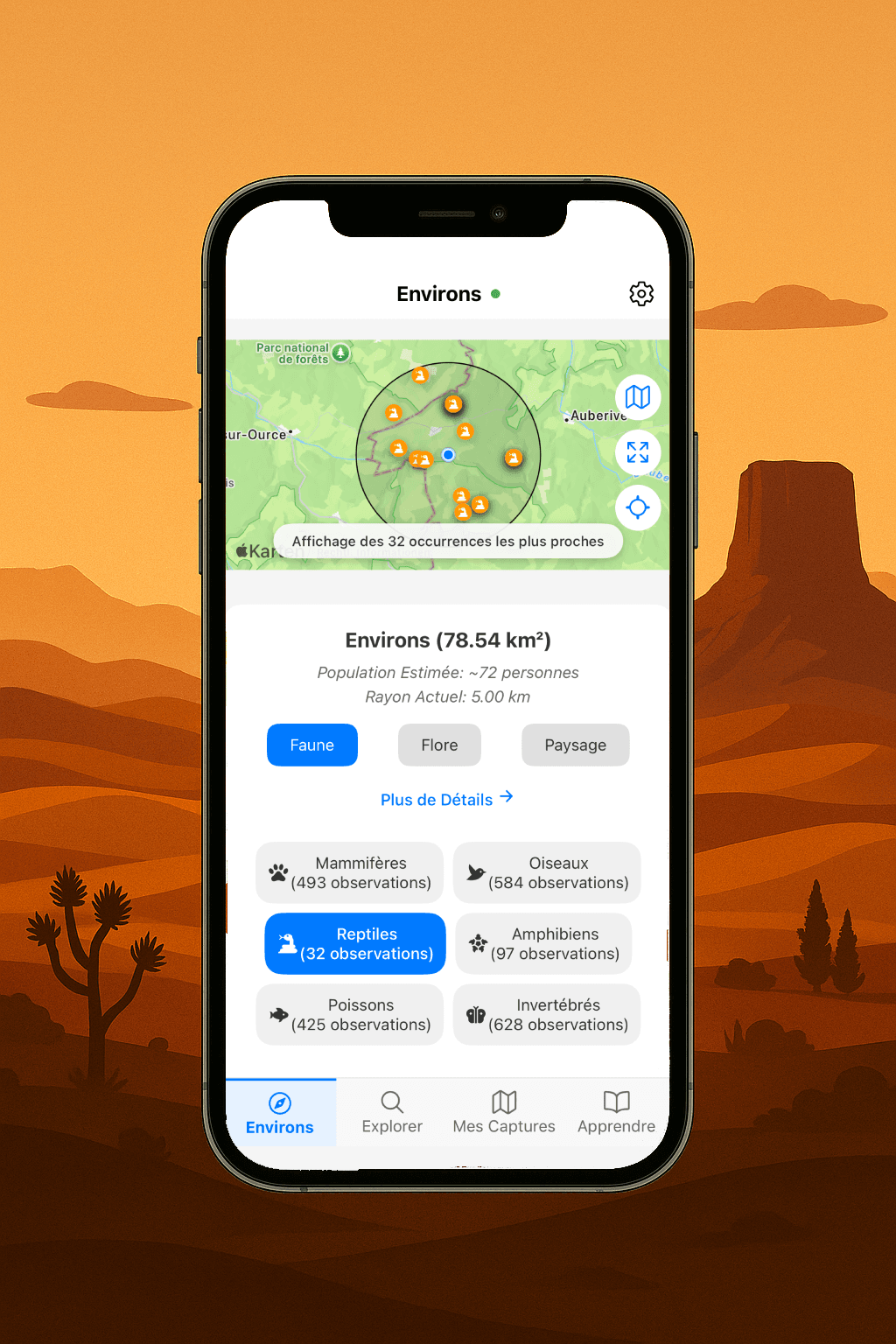 Reconnaissez instantanément les espèces et accédez à des informations détaillées selon votre localisation.
